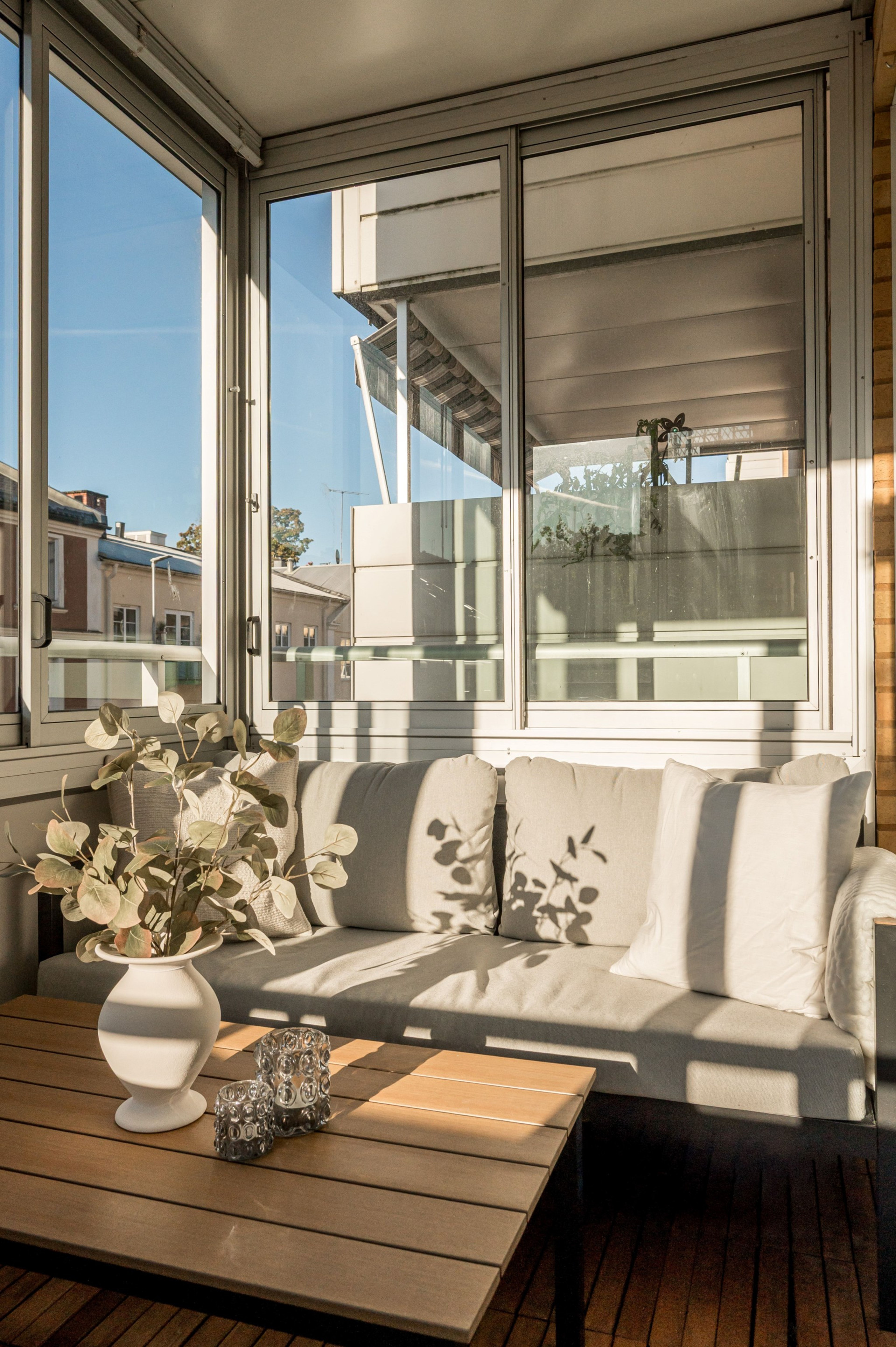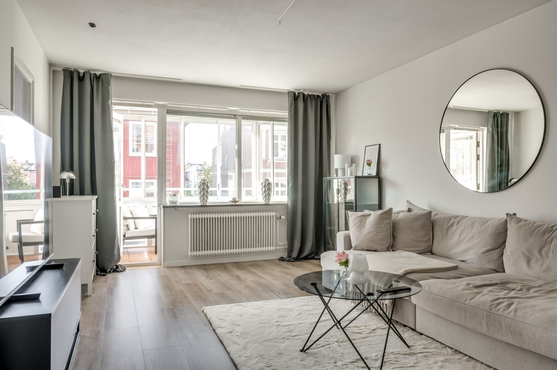 Vardagsrum med fint ljusinsläpp! Här finns god plats för möblemang samt utgång till den inglasade balkongen i söderläge.