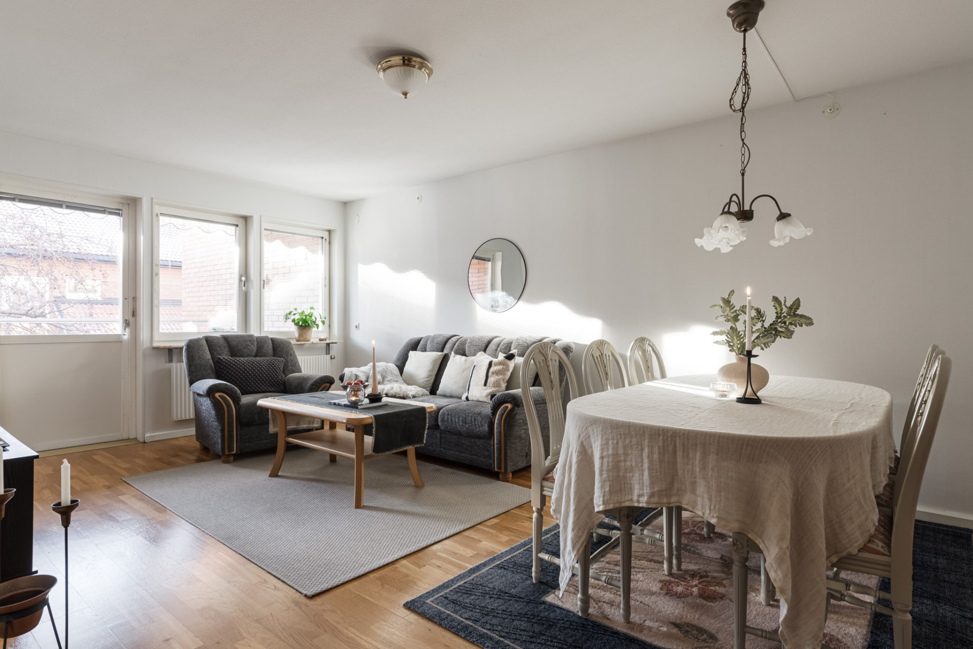 Föreningen har även en gemensam övernattningslägenhet för gäster.Föreningens ekonomiSkuldsättning år 2022: 3 878 kr/kvm Räntor och lån hos föreningen: Låneinstitut Räntesats/ Konv.datum/ Amortering Stadshypotek 1,39% 2028-12-01 770 000 40 000 Stadshypotek 1,39% 2029-01-30 2 002 000 120 000 Stadshypotek 1,16% 2025-12-01 18 099 360 1 000 000 Stadshypotek 1,64% 2029-04-30 9 326 550 192 300 Stadshypotek 1,19% 2026-09-01 3 342 685 33 852Föreningen äger marken?JaAntal lägenheter105 stÖverlåtelseavgift1470 kr (betalas av Säljare)Pantsättningsavgift588 krTillåts juridisk person?NejTillåts delat ägande?JaRenoveringarTidigare års större underhåll: