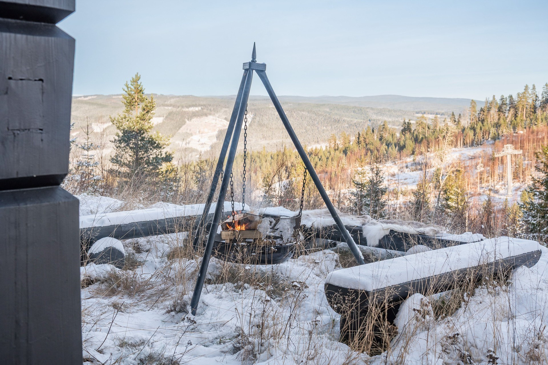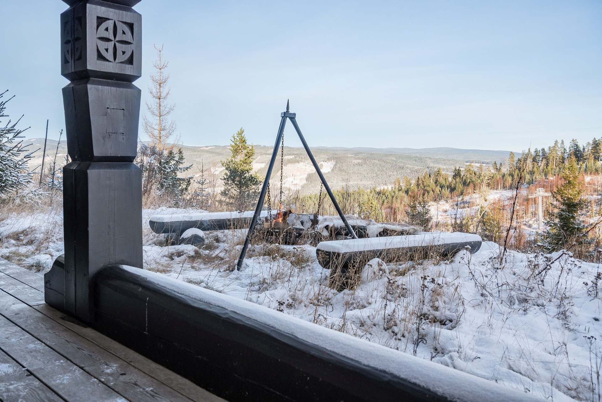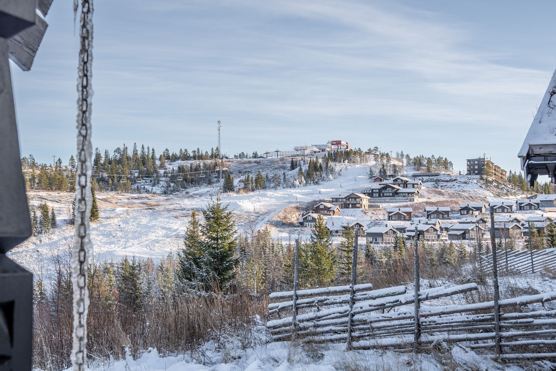 Toppenläge i Orren med milsvid utsikt över Klarälvdalen i norr och skidåkarna som glider förbi i Nordsjöbacken. Ski-in-ski-out-läge!