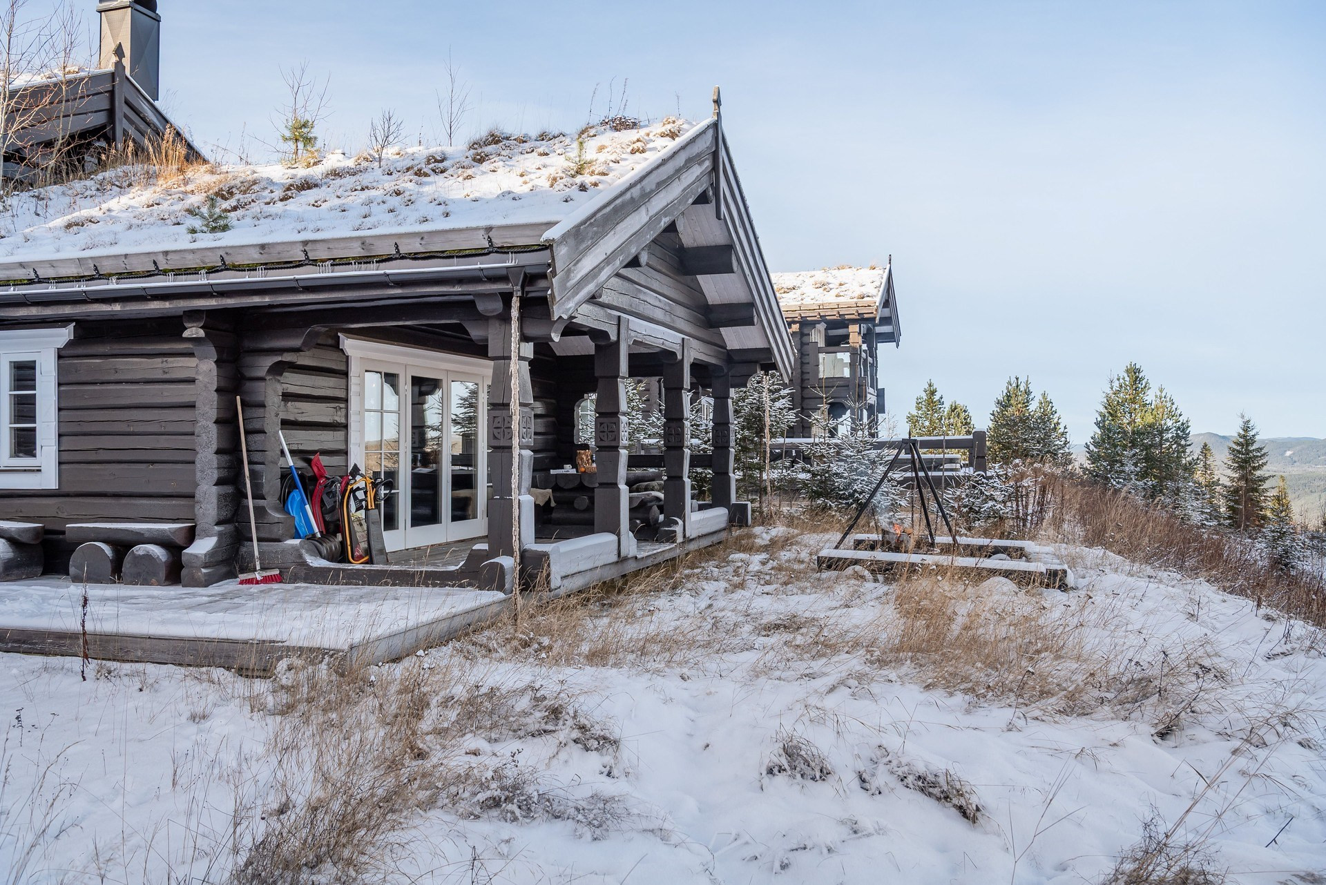Perfekt läge både vinter- och sommartid, med grusad infart och parkering samt gräsmatta. Bär- och svampmarker finns i omgivningarna, liksom skoter- och längdåkningsspår.Uteplats/balkong