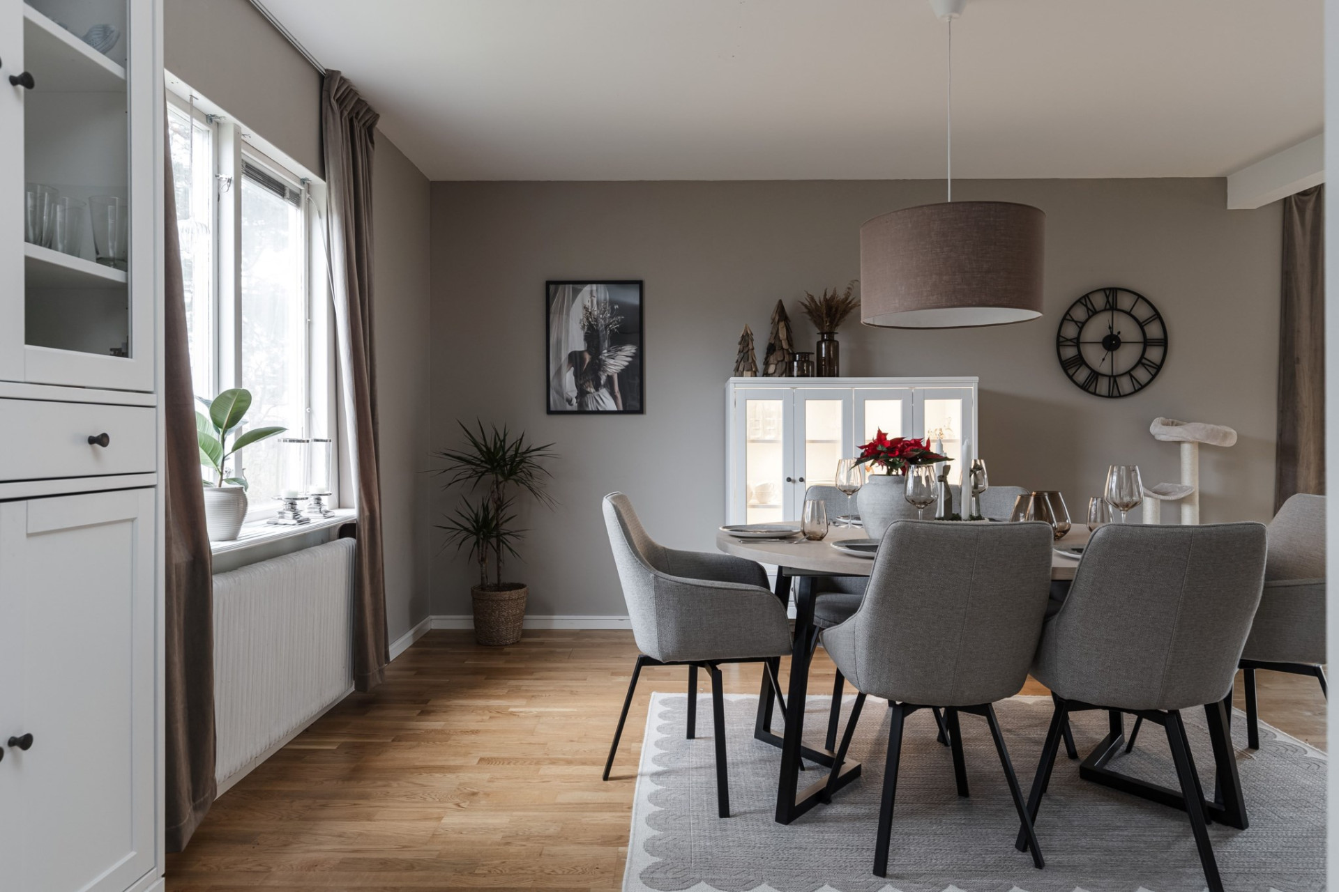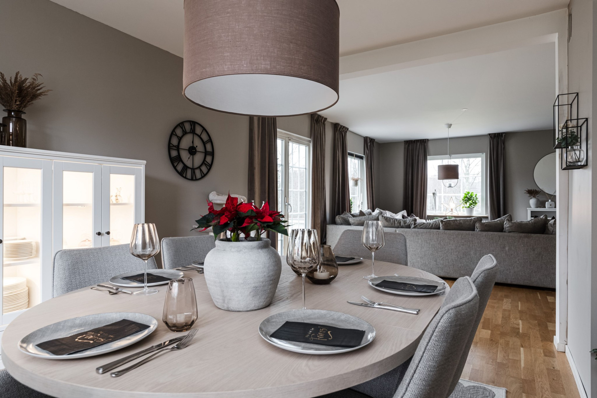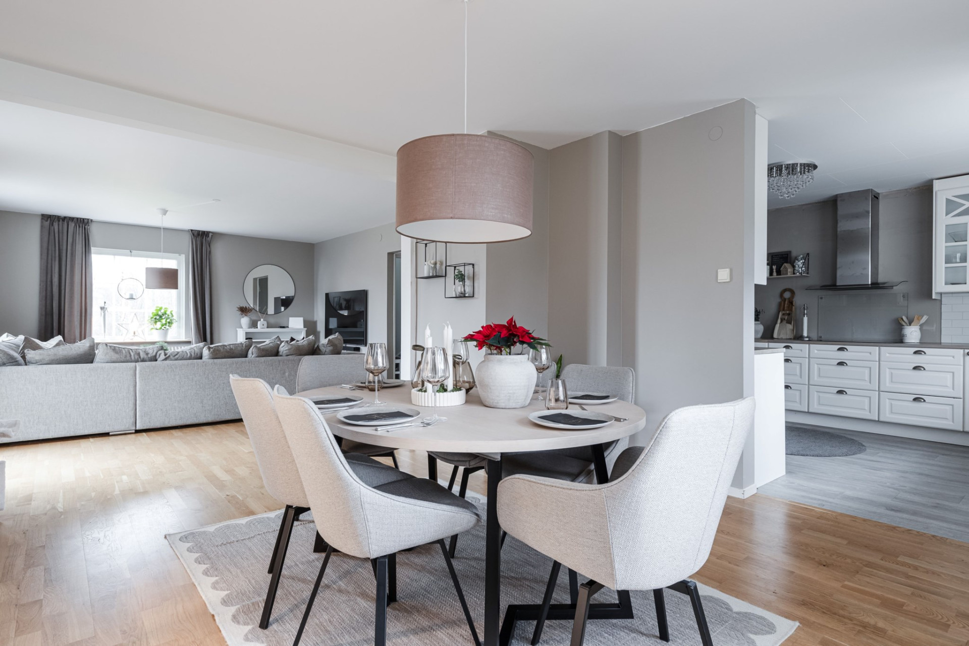 Öppen planlösning mot vardagsrummet där plats för matbord finns!Vardagsrum