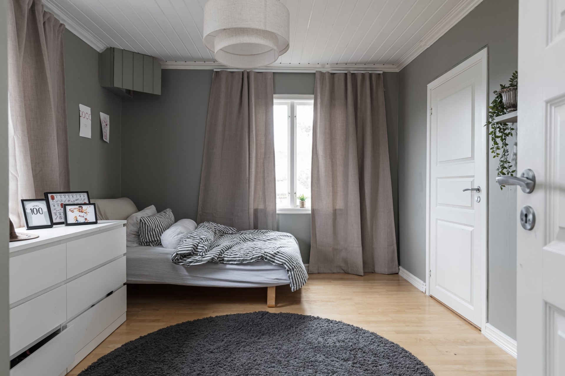 Stort sovrum med nyare PAX-garderober från IKEA. Plats för dubbelsäng.