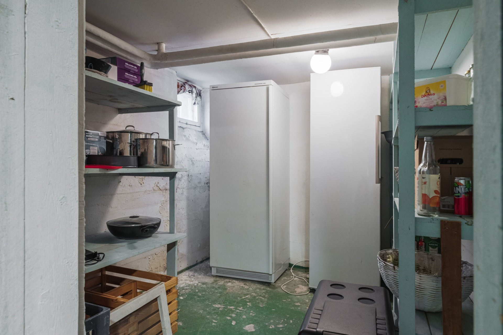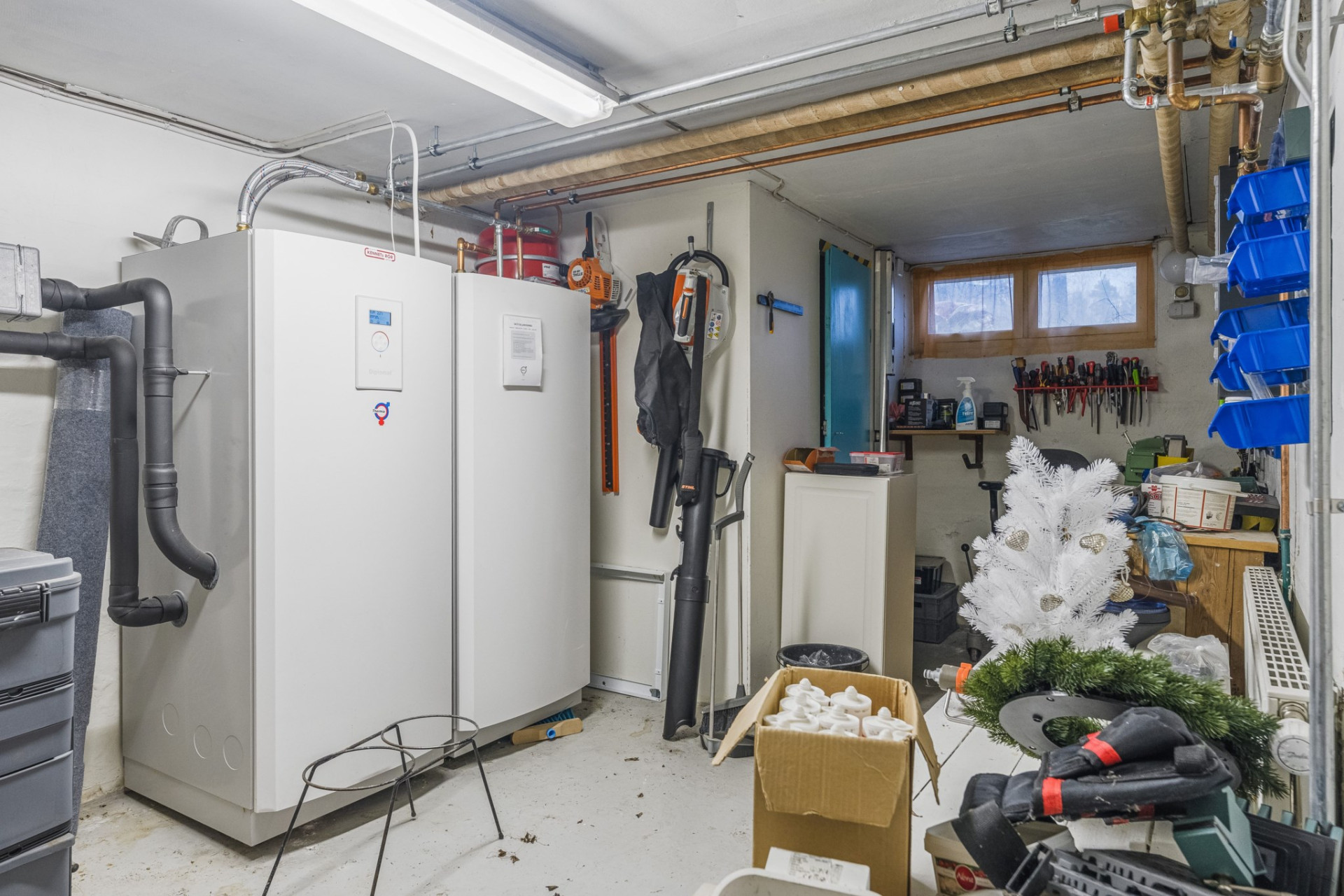 Källarplanet inrymmer pannrum, en enklare tvättstuga samt flera förrådsutrymmen.