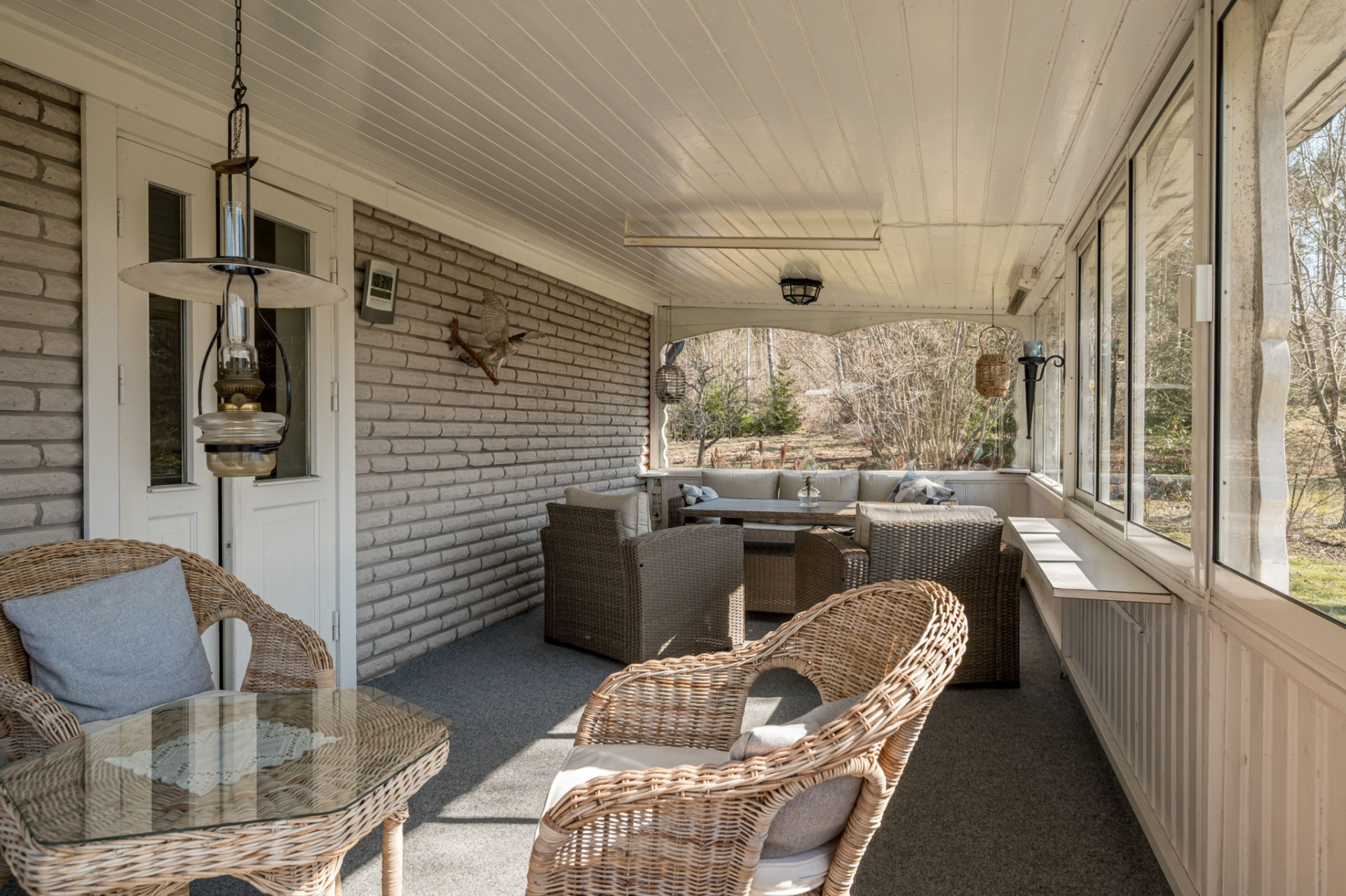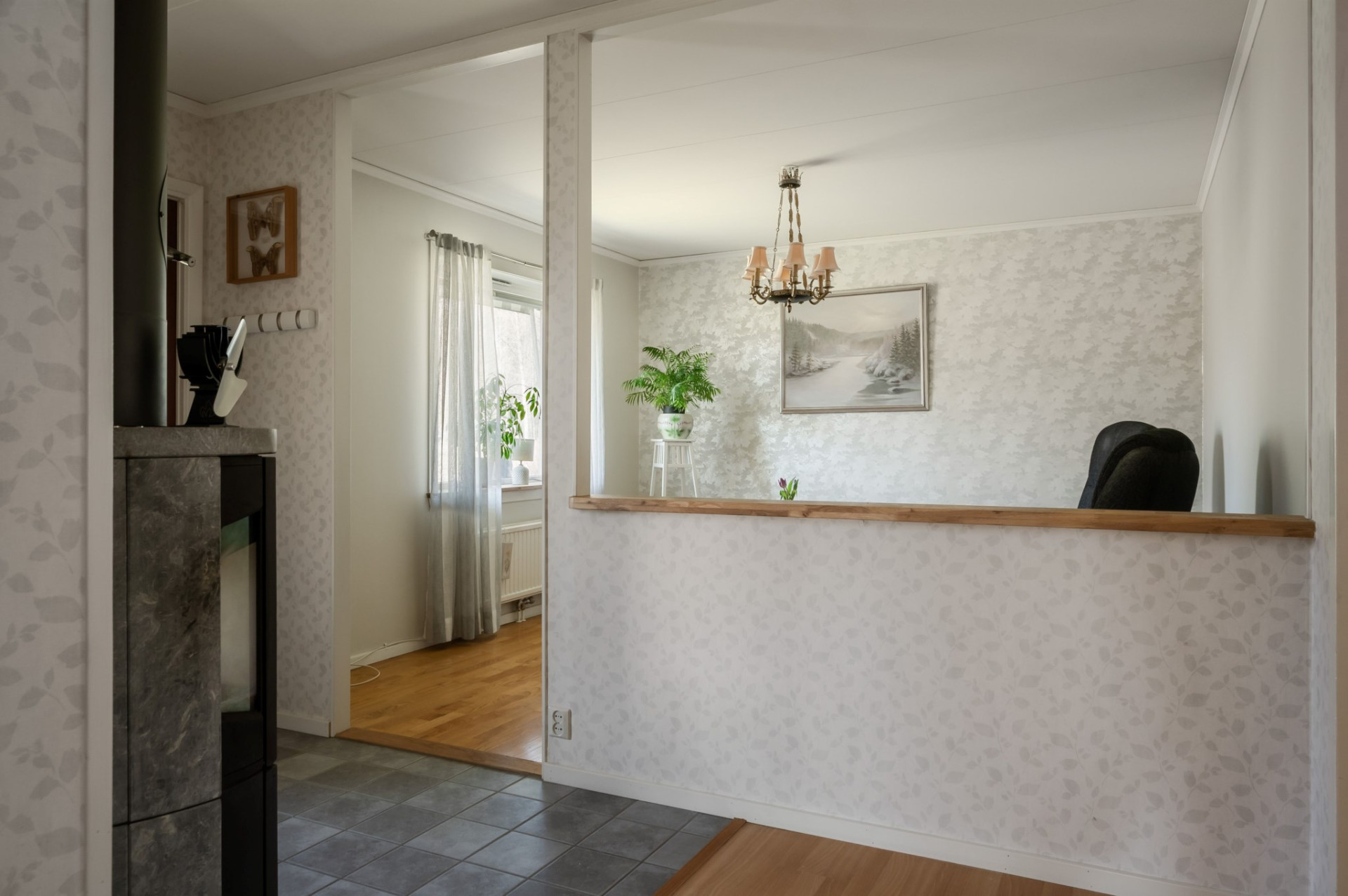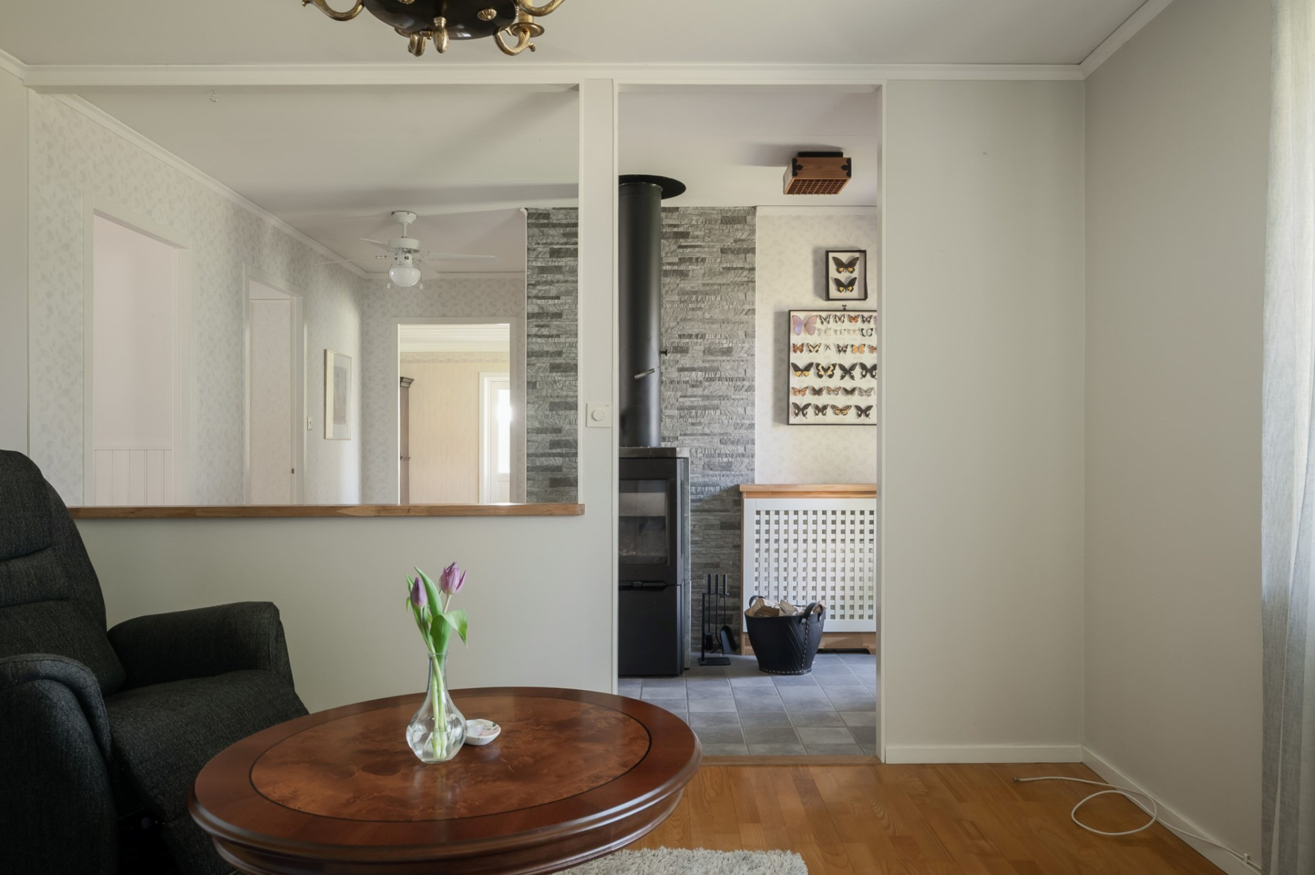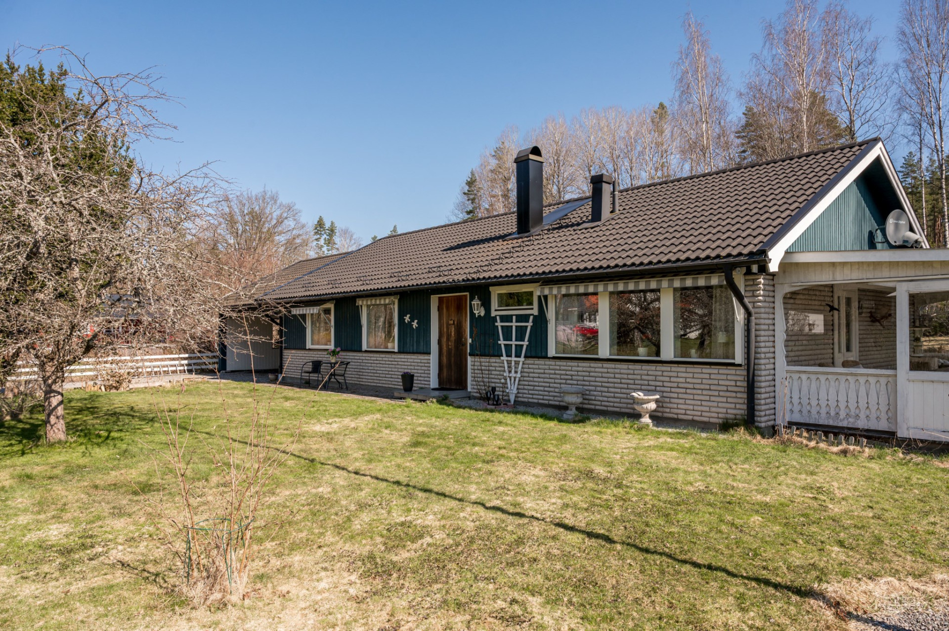 Byggnadsår1972FasadTegel, träpanelStommeTräFönster3-glasTakBetongpannorGrundBetongplatta på markUppvärmningBergvärme + braskaminVatten/avloppKommunalt vatten året om. Kommunalt avloppVentilationSjälvdragRenoveringCarport byggd 2008