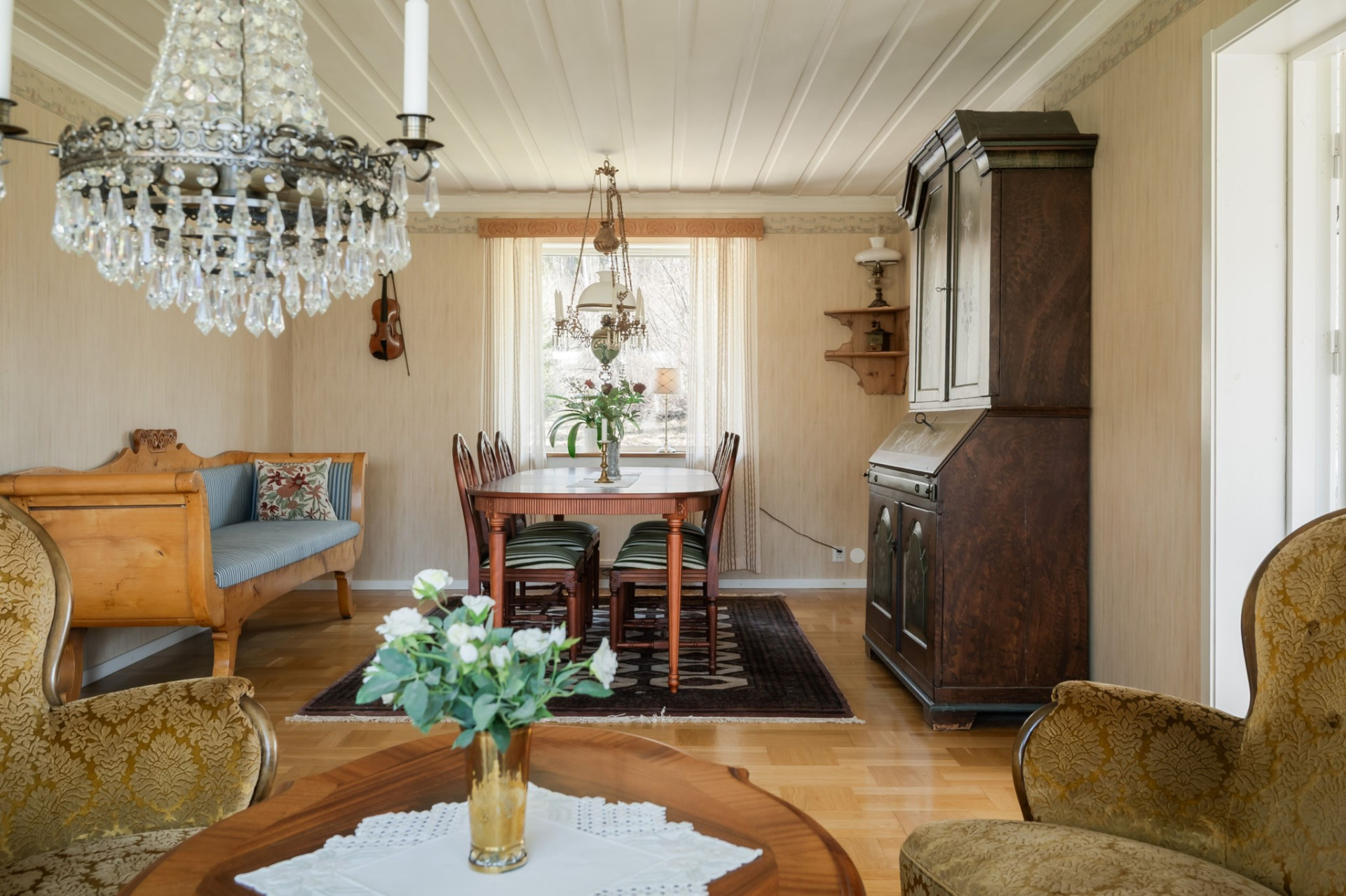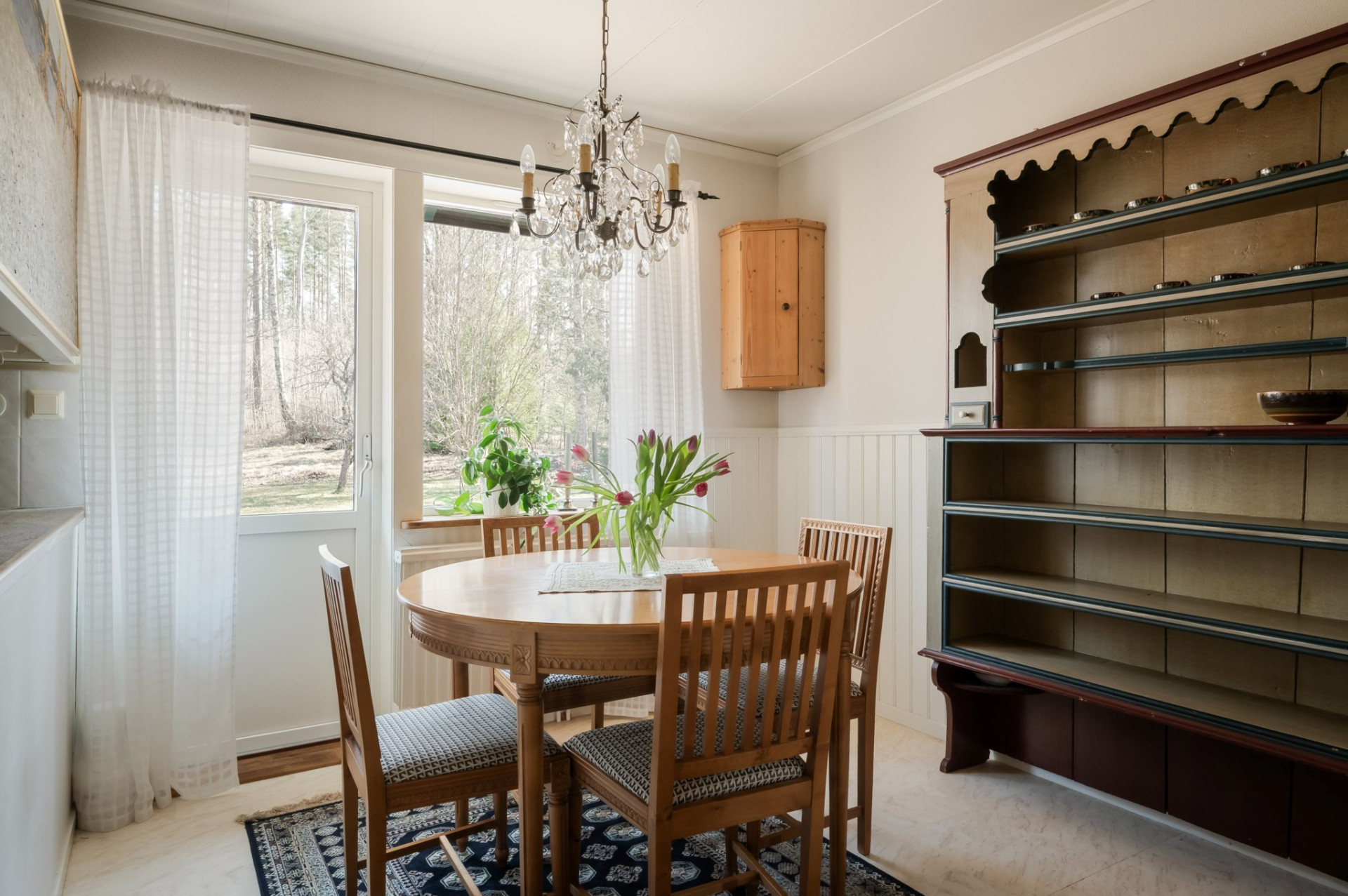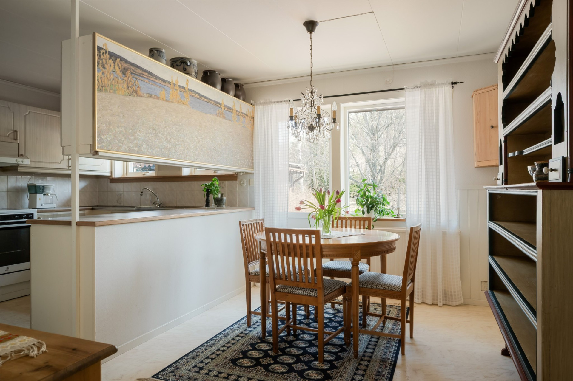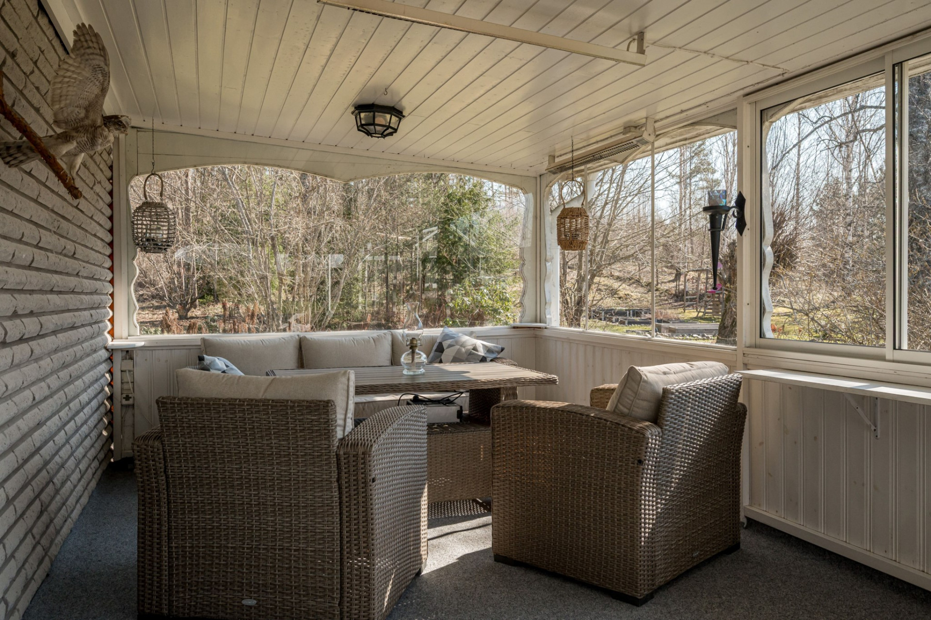 Byggnadsår1972FasadTegel, träpanelStommeTräFönster3-glasTakBetongpannorGrundBetongplatta på markUppvärmningBergvärme + braskaminVatten/avloppKommunalt vatten året om. Kommunalt avloppVentilationSjälvdragRenoveringCarport byggd 2008