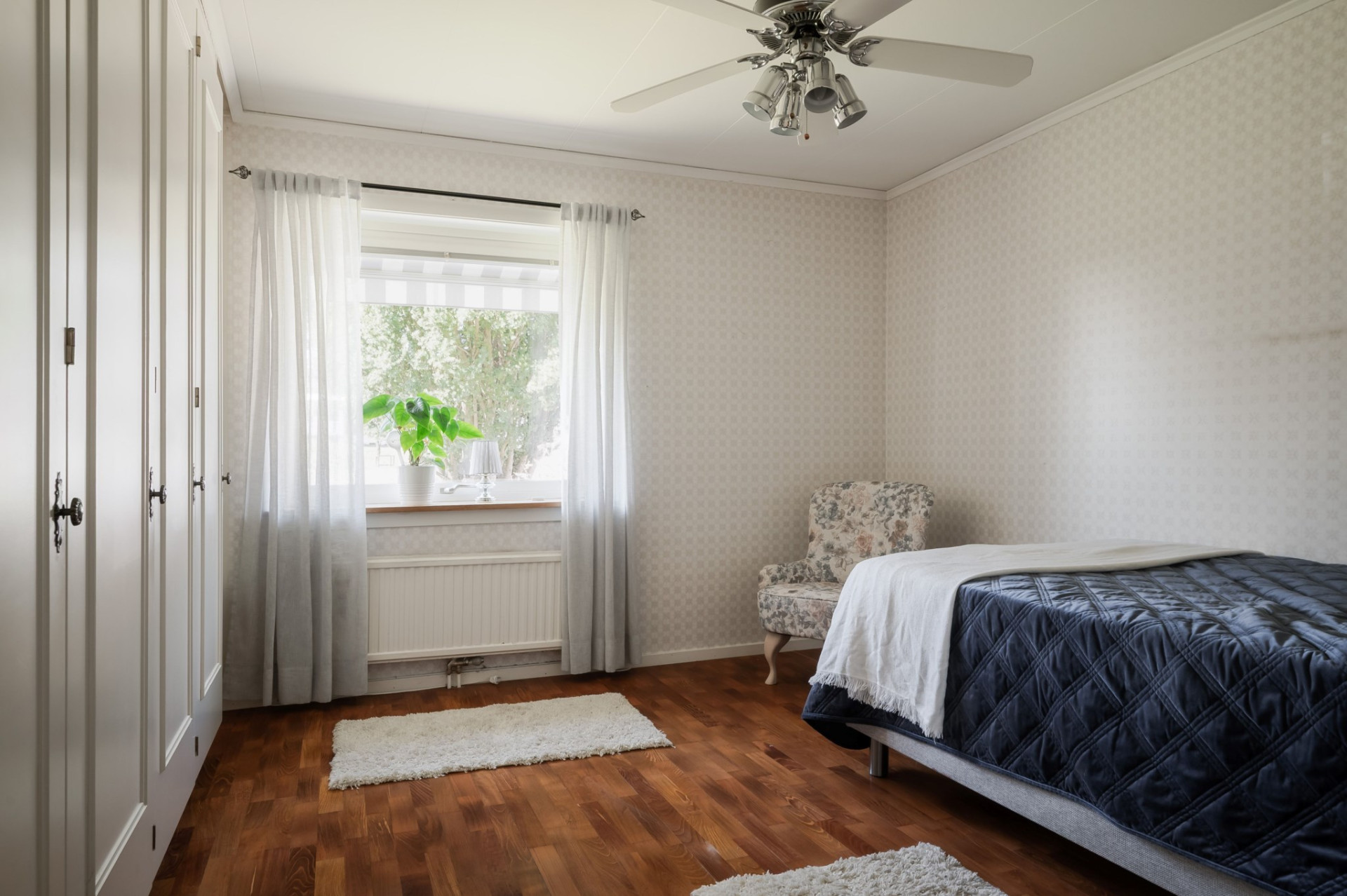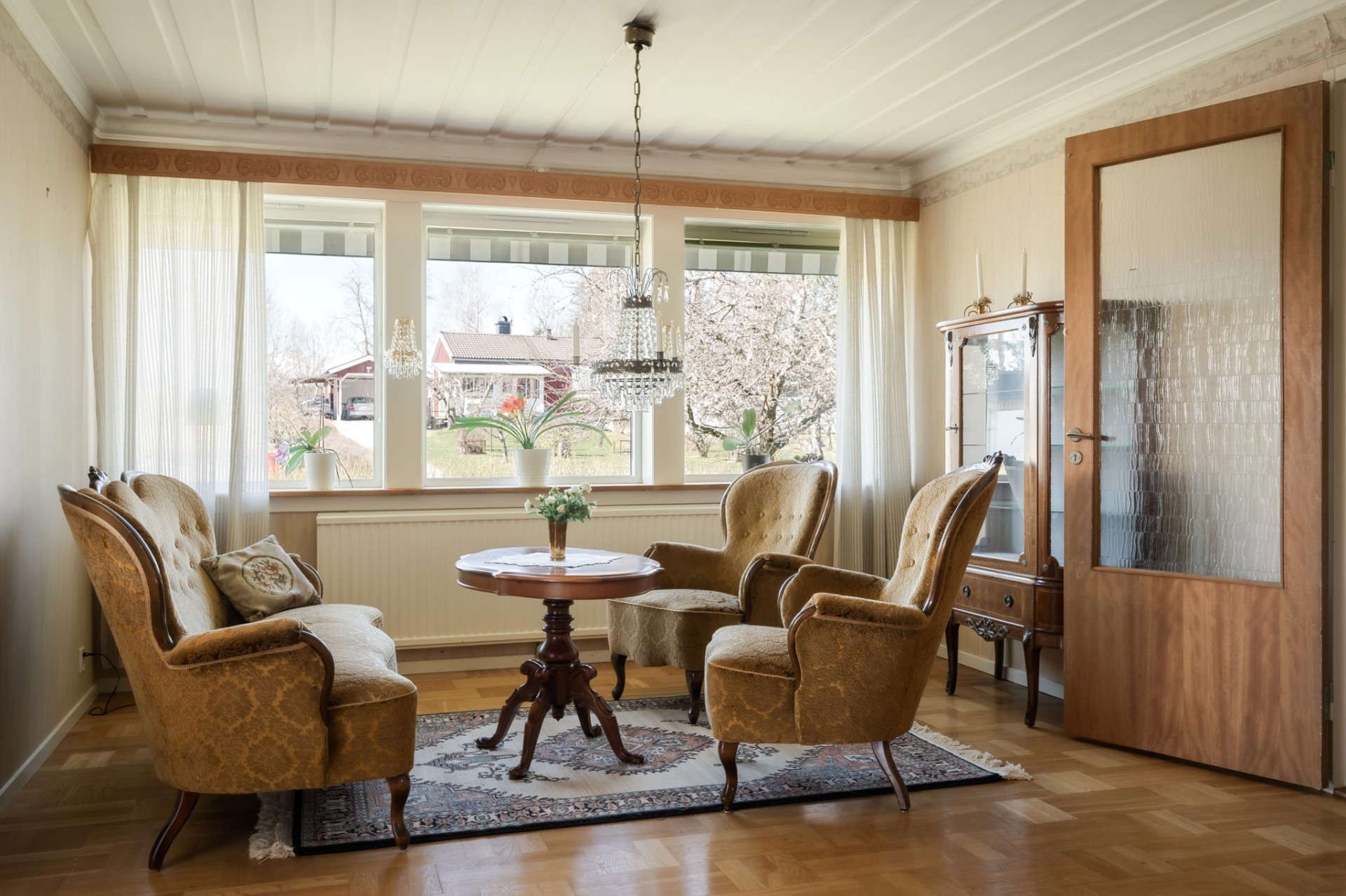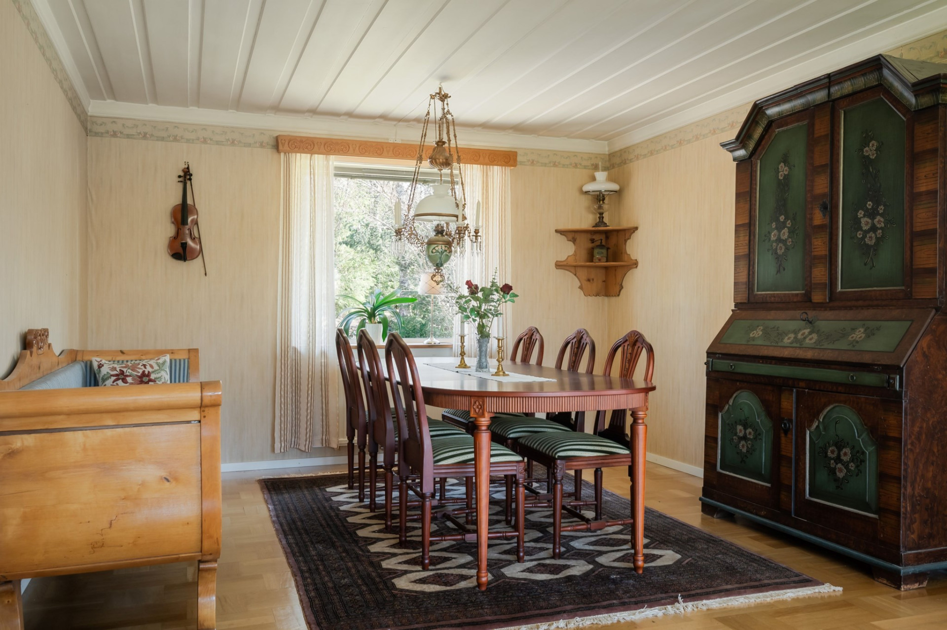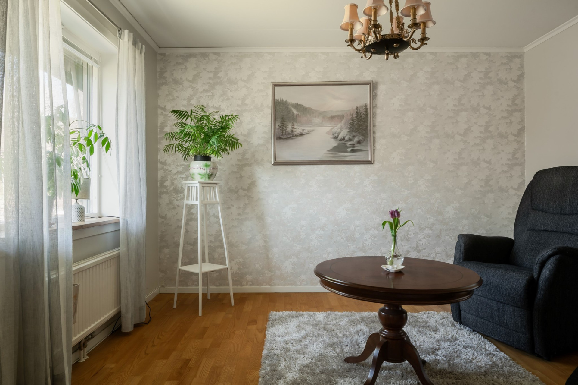 Byggnadsår1972FasadTegel, träpanelStommeTräFönster3-glasTakBetongpannorGrundBetongplatta på markUppvärmningBergvärme + braskaminVatten/avloppKommunalt vatten året om. Kommunalt avloppVentilationSjälvdragRenoveringCarport byggd 2008