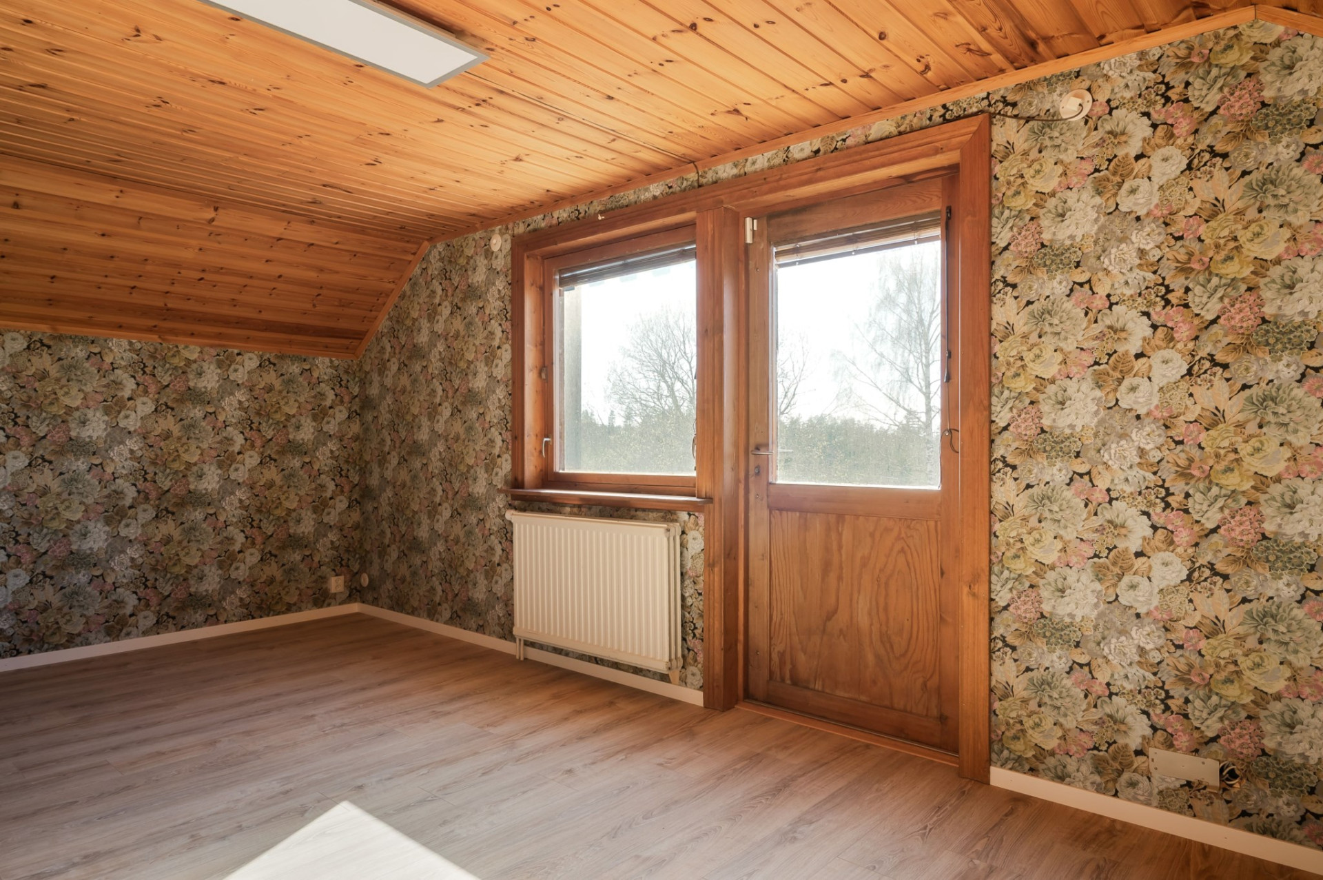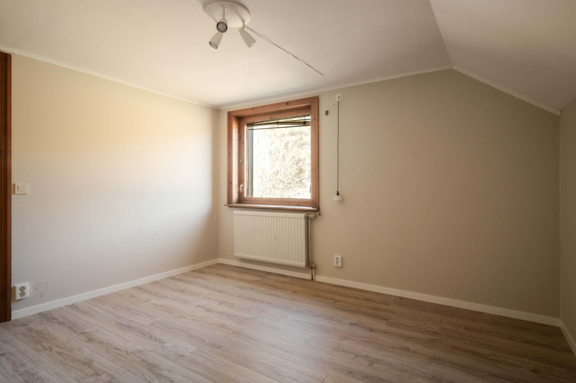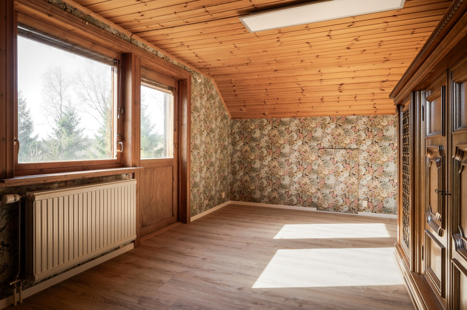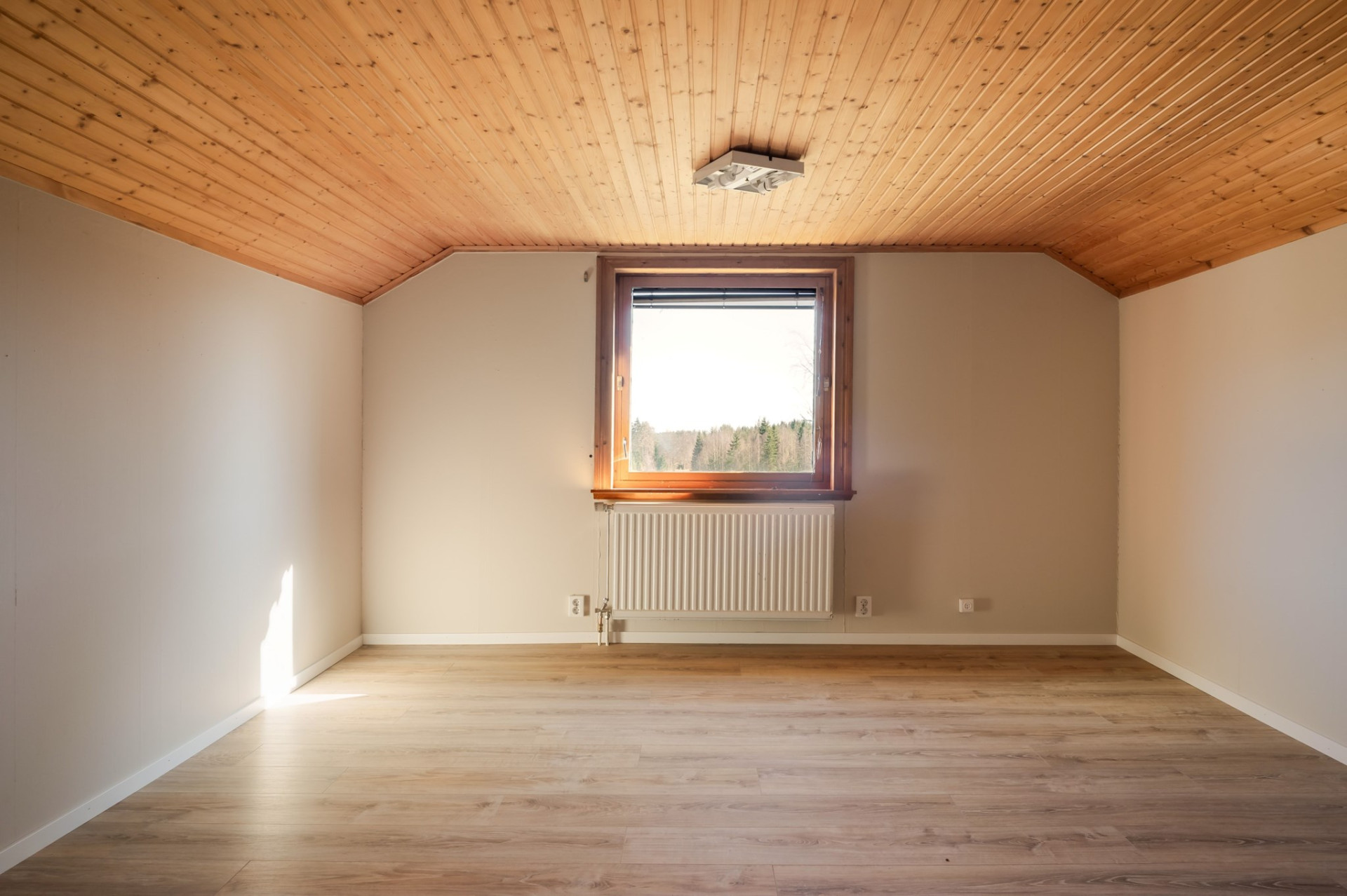 Stort sovrum med god plats för dubbelsäng. Goda förvaringsmöjligheter i kattvind.