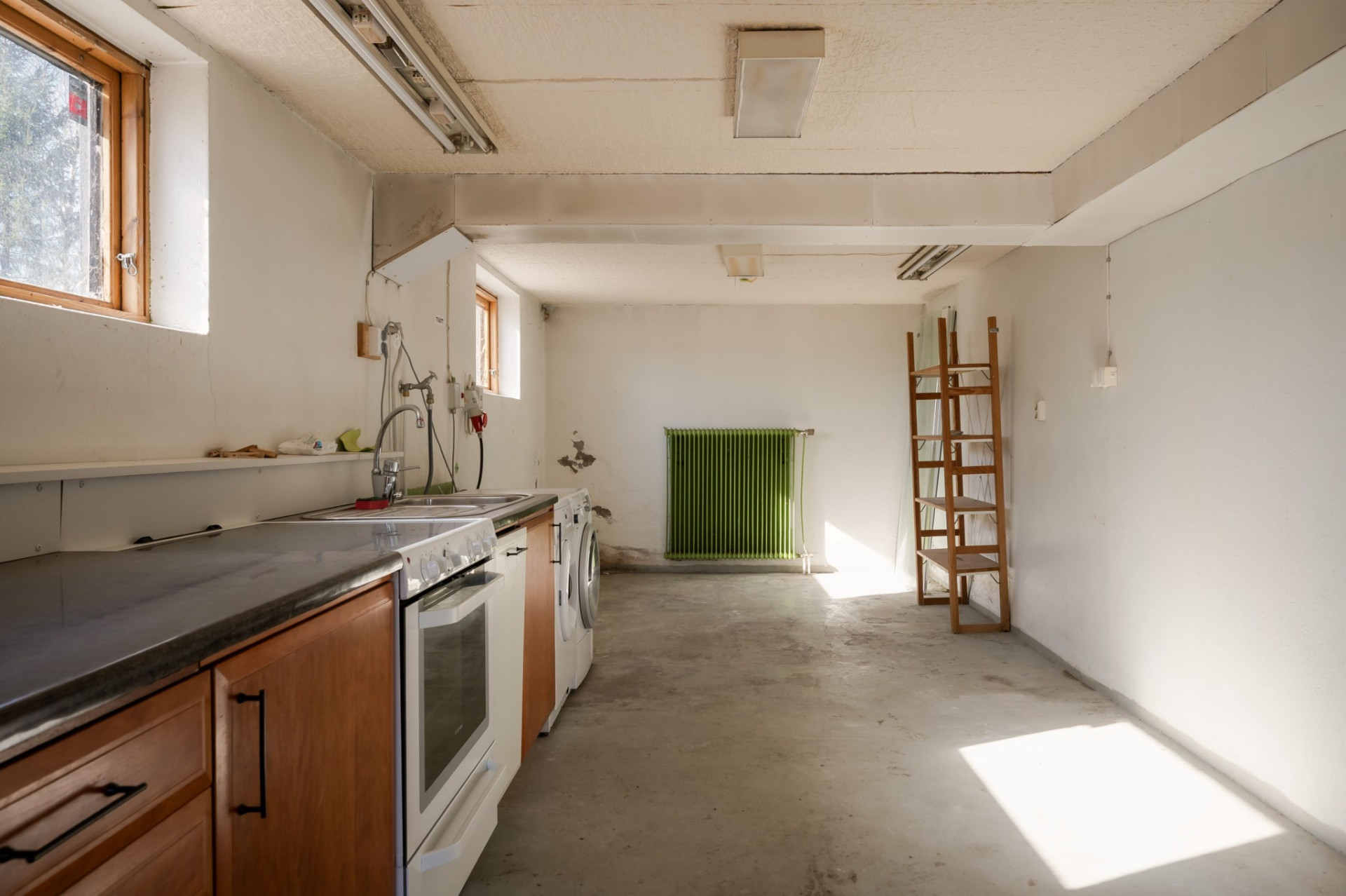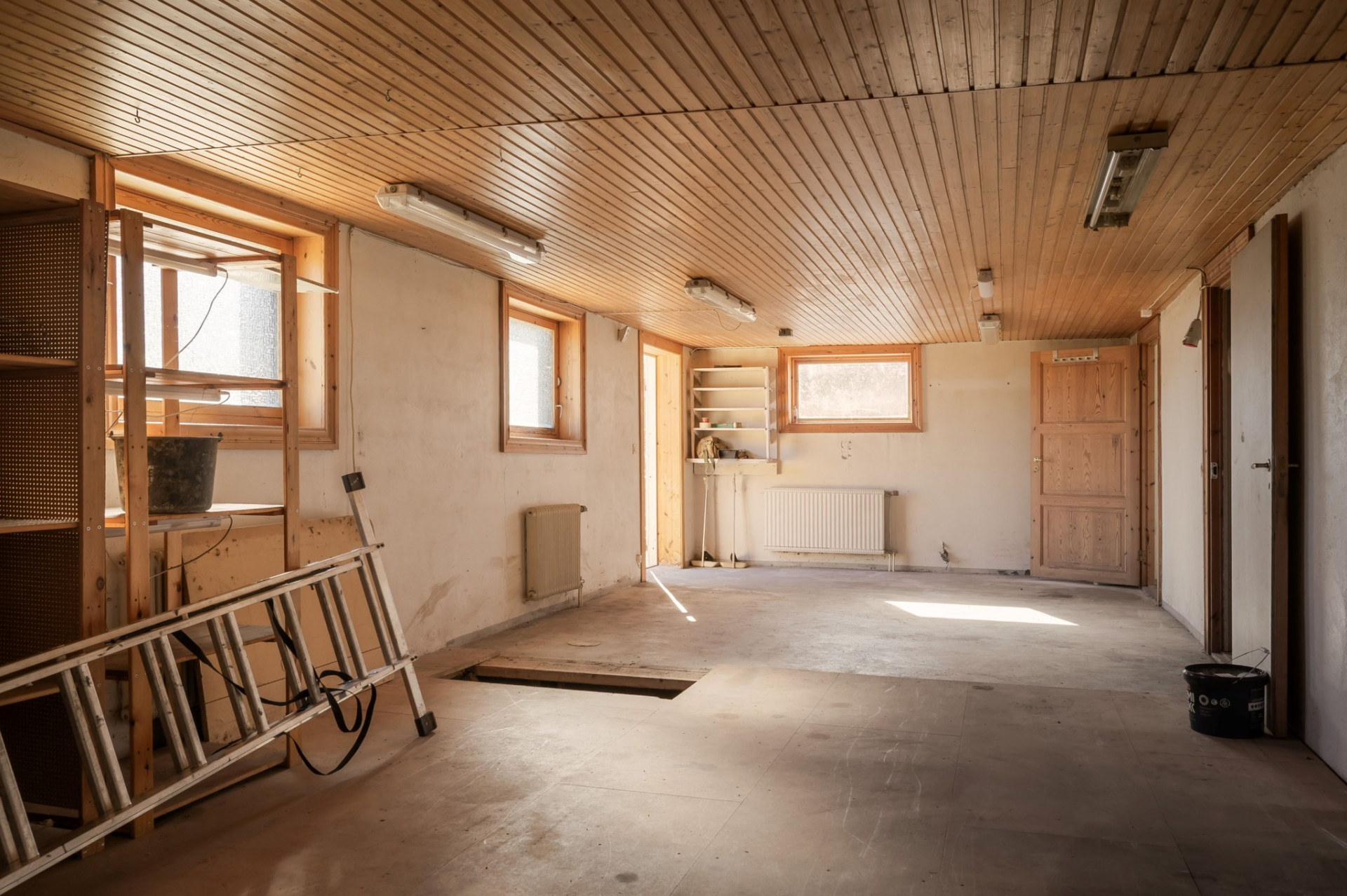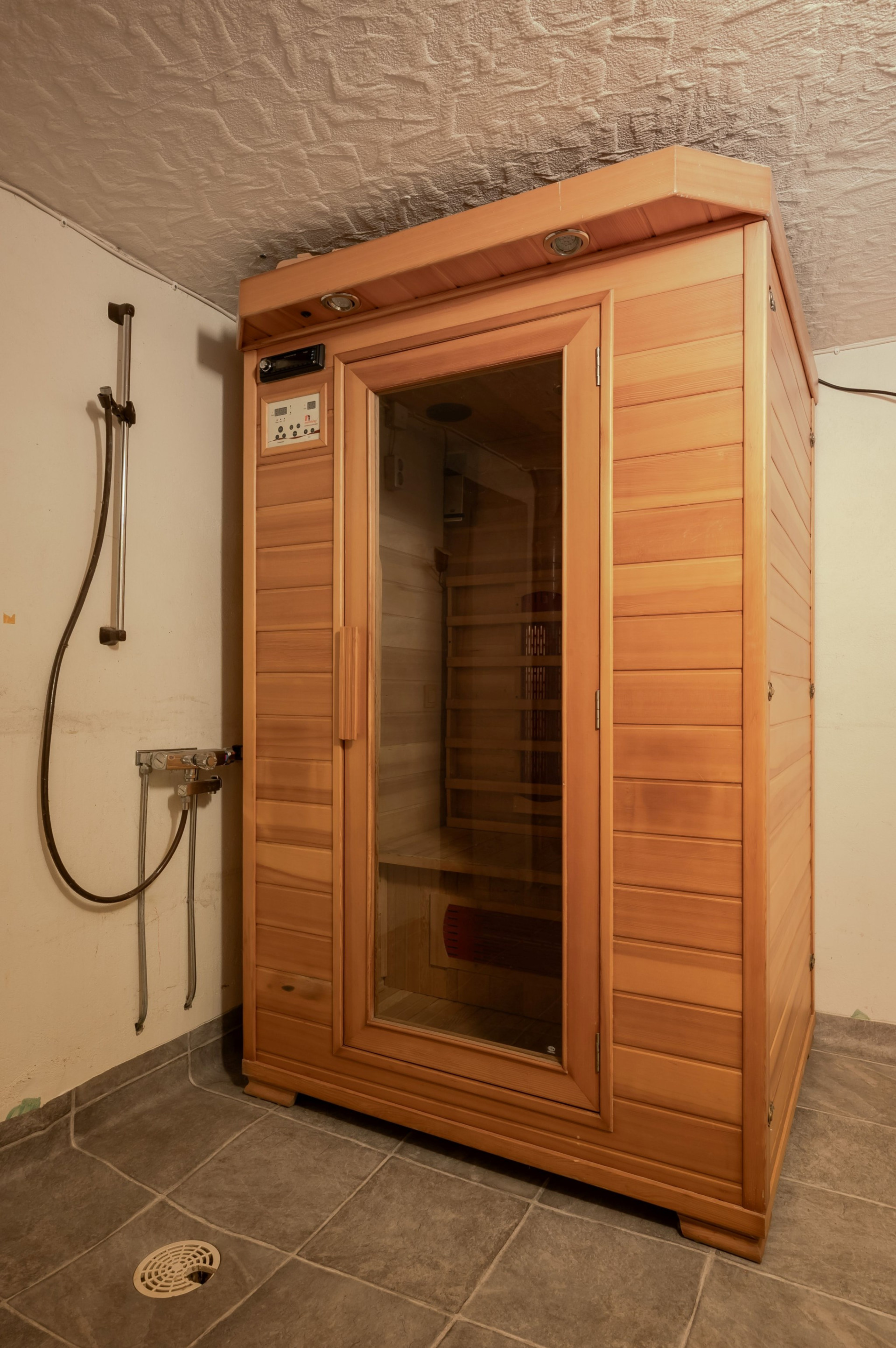 Här finns en kallrum för förvaring av mat, pannrum, förråd, badrum samt en infraröd bastu!